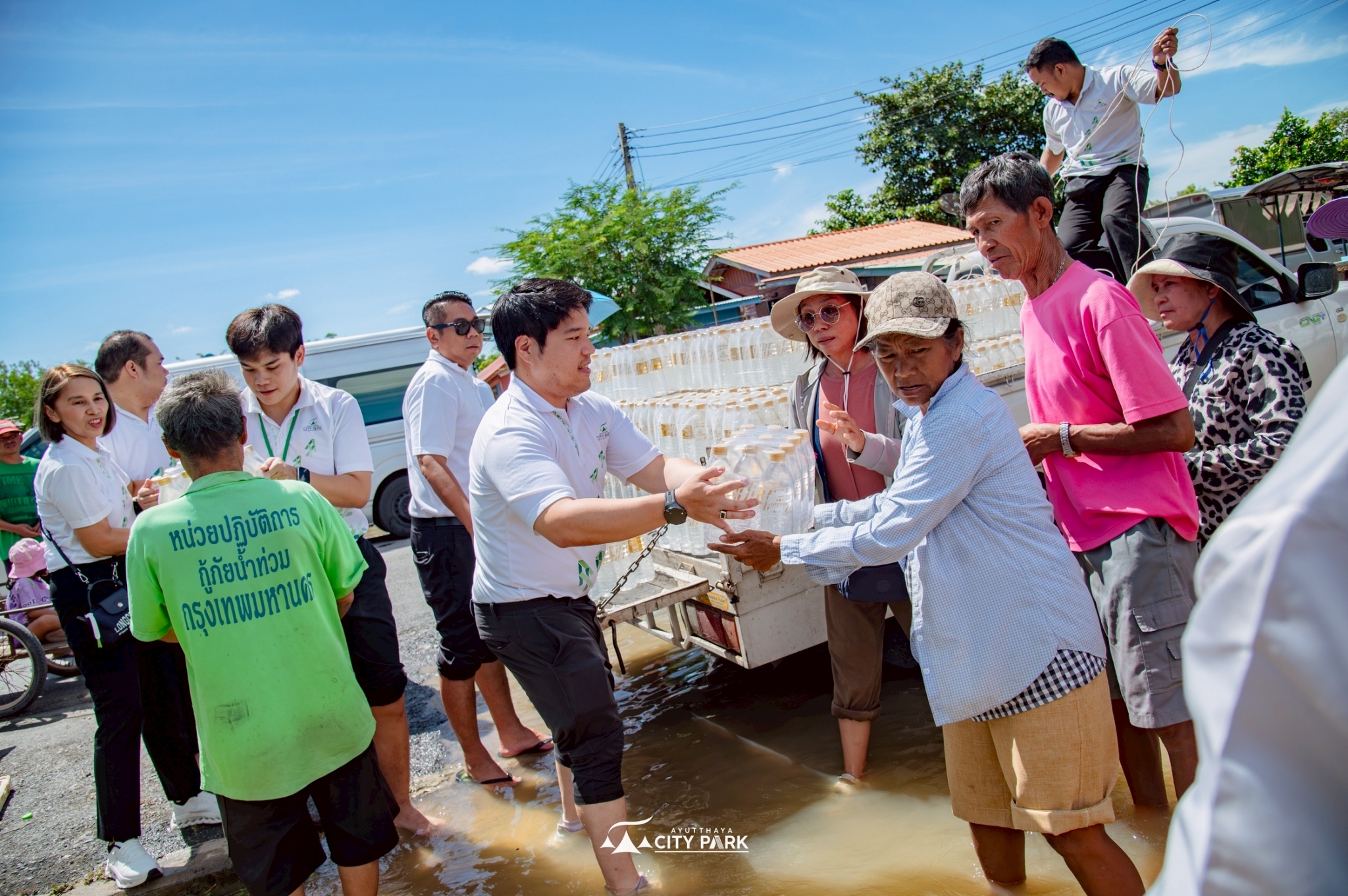 ศูนย์การค้าอยุธยาซิตี้พาร์คลงพื้นที่ส่งมอบกำลังใจผู้ประสบอุทกภัยน้ำท่วม นำโดย คุณปพน ด่านชัยวิโรจน์ ผู้ช่วยประธานเจ้าหน้าที่บริหาร พร้อมด้วยเจ้าหน้าที่ของศูนย์การค้าอยุธยาซิตี้พาร์ค เดินทางไปมอบน้ำดื่ม ช่วยเหลือพี่น้องหมู่ที่ 5 ตำบลหัวเวียง ชาวอำเภอเสนา และถวายน้ำดื่มแด่ พระเมธีวชิรธาดา (เวชยันต์ เวชฺยนฺโต ป.ธ.๘) เลขาเจ้าคณะจังหวัดพระนครศรีอยุธยา (เจ้าคณะอำเภอเสนา) เพื่อมอบให้แก่วัดบันไดช้าง, วัดประดู่โลกเชฎฐ์, , วัดบางกระทิง, วัดสุวรรณเจดีย์, วัดหัวเวียง โดยได้รับการประสานงานจาก ผู้ใหญ่สมนึก สุวรรณหงษ์ ผู้ใหญ่บ้าน ในการส่งมอบน้ำให้พี่น้องชาวหัวเวียง