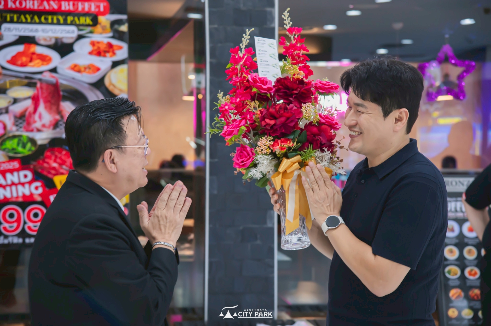 และเนื่องในโอกาสเปิดร้านใหม่ ดร.สมพล รัชตพิมลชัย ประธานเจ้าหน้าที่บริหารการตลาด ศูนย์การค้าอยุธยาซิตี้พาร์ค ร่วมแสดงความยินดี แก่คุณ SUNGHUN JEONG (Eric) CEO K&J Food International Co., Ltd. ที่ได้มาเป็นส่วนหนึ่งกับศูนย์การค้าอยุธยาซิตี้พาร์ค